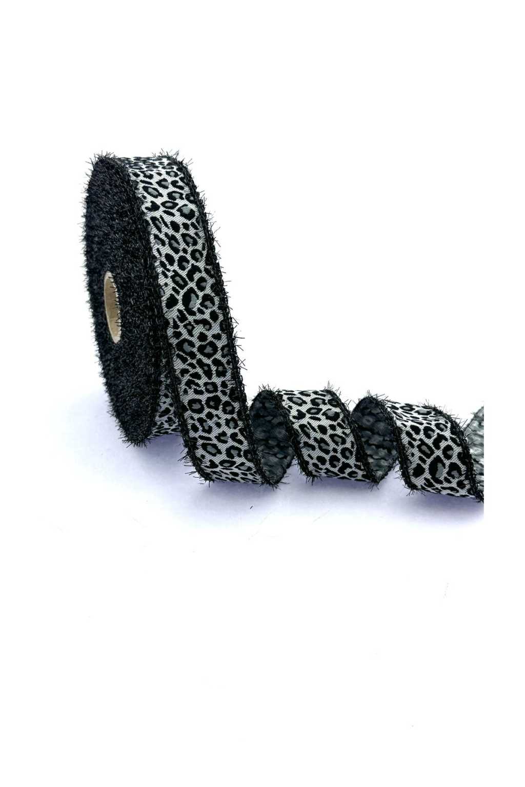 25998-SKL BROWN LEOPARD PATTERN FEARED WOVEN RIBBON